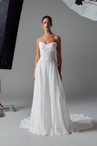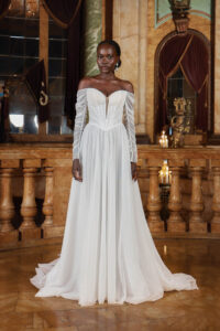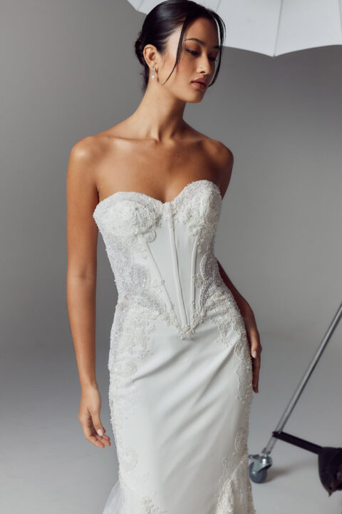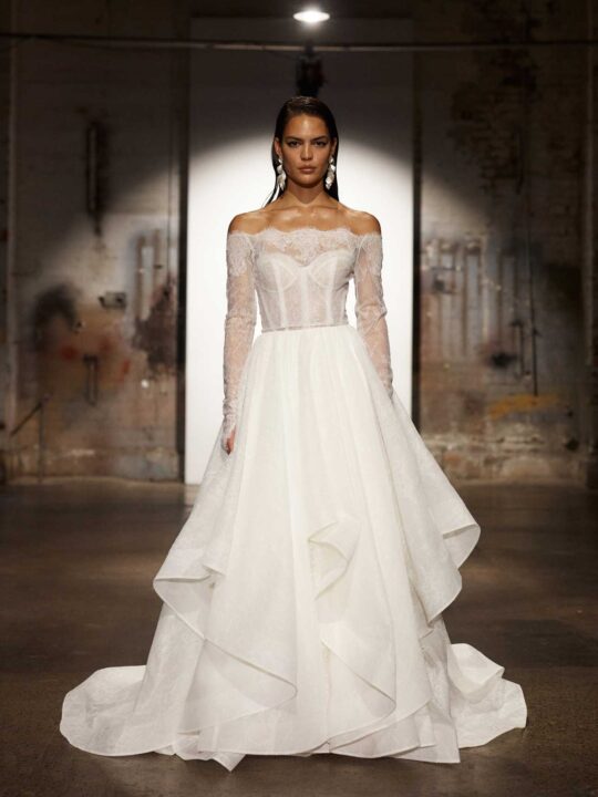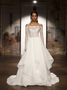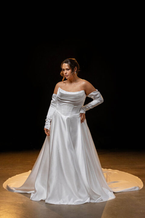 With innovative silhouettes that flatter a variety of body types, Evie Young wedding dresses strike the perfect balance between modern and traditional. Whether you’re drawn to clean lines with a fashion twist, statement sleeves, dramatic trains, or romantic lace with texture and depth, Evie Young is designed to feel expressive, feminine, and unforgettable—while still feeling like you.